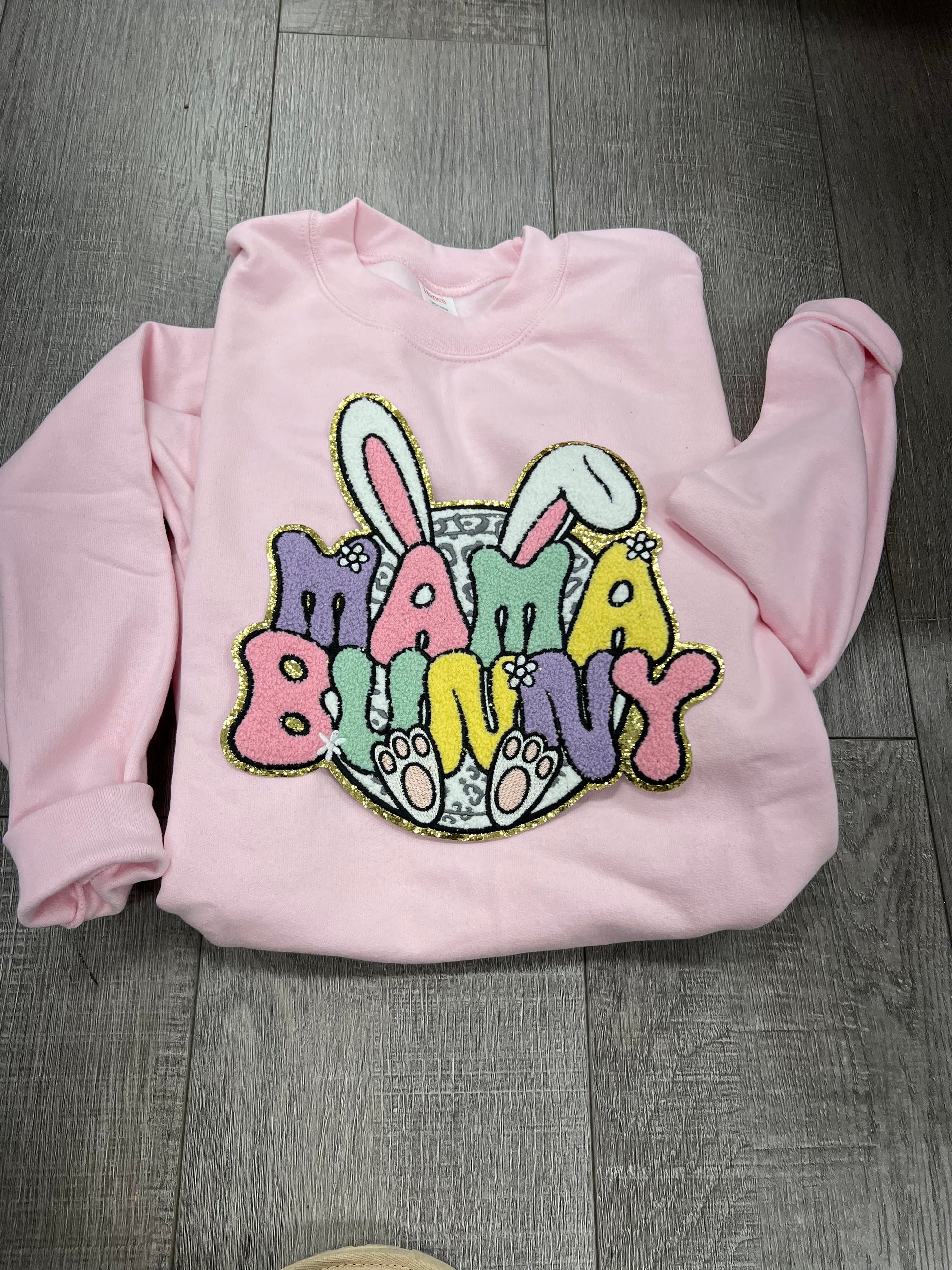 Mama Bunny pink chenille patch sweatshirt